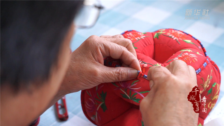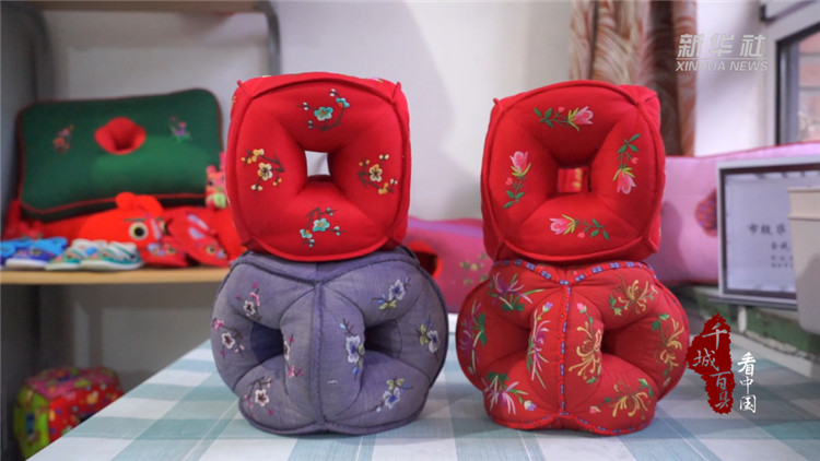 耳枕,因在枕頭的中心留有一孔,側(cè)睡時(shí)可以保護(hù)耳朵不受壓迫而得名。河北香河的金錢耳枕歷史悠久、制作工藝繁瑣,要經(jīng)過(guò)印花、印字、裁剪、繡花、縫制、填充等多道工序。近年來(lái),耳枕傳承人不斷改造創(chuàng)新,從祖輩的粗布碎布到現(xiàn)在的各種棉布、錦緞布料,從單一拼接的花色到里外刺繡,造型也從過(guò)去的方形衍生出六孔圓形、十四孔長(zhǎng)方形等,實(shí)用的同時(shí),賦予耳枕較高的藝術(shù)收藏價(jià)值。
