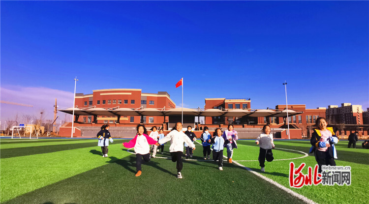 11月28日,在北京大興國際機場臨空經(jīng)濟區(qū)(廊坊)初級中學田徑運動場上,學生們正在上體育課。河北日報記者劉杰攝