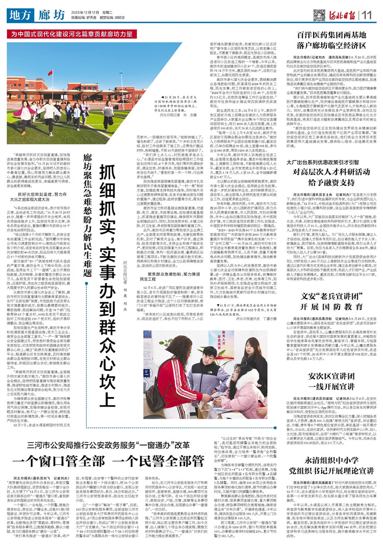 “2023—2025年實施60個義務教育學校擴容提質(zhì)項目”“市級每年安排2000萬元教育質(zhì)量提升專項資金”“攜手京津名校實施‘六個一百’合作工程”……11月26日,廊坊市印發(fā)《關于促進全市教育高質(zhì)量發(fā)展的十條措施》,著力破解教育資源不足、人員不夠、質(zhì)量不高等難點熱點問題,加快建設教育強市,推動教育高質(zhì)量發(fā)展。