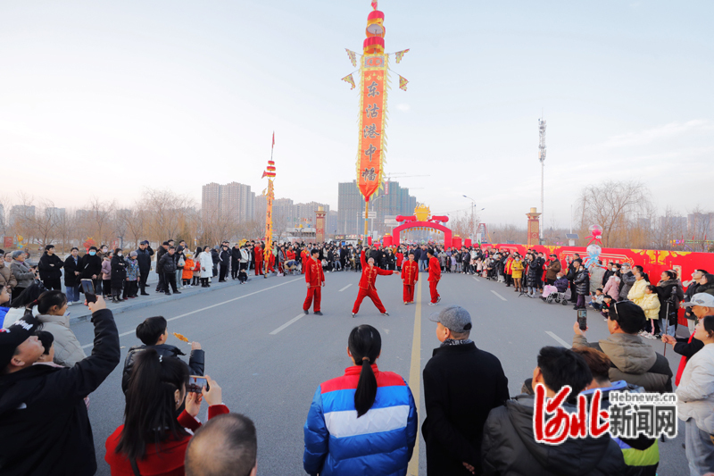 2月11日,2024廊坊首屆新春燈會(huì)暨春節(jié)廟會(huì)在安次區(qū)御龍河公園盛裝啟動(dòng)。圖為東沽港中幡表演引得游客連連拍手叫好。通訊員陳童攝