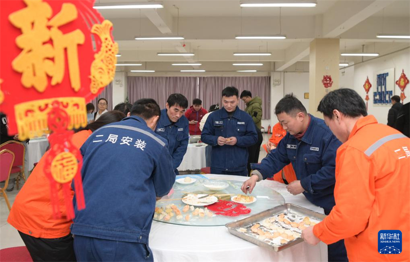 2月2日,在河北廊坊,中建二局安裝公司裝配式事業(yè)部的產(chǎn)業(yè)工人品嘗自己包的餃子。