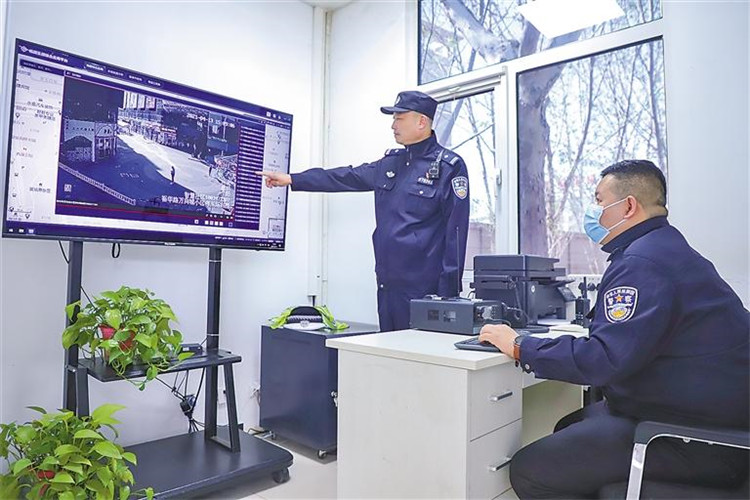 廣陽(yáng)道環(huán)島警務(wù)站的輔警工作人員正在進(jìn)行視頻監(jiān)控巡查。記者董旭旭攝