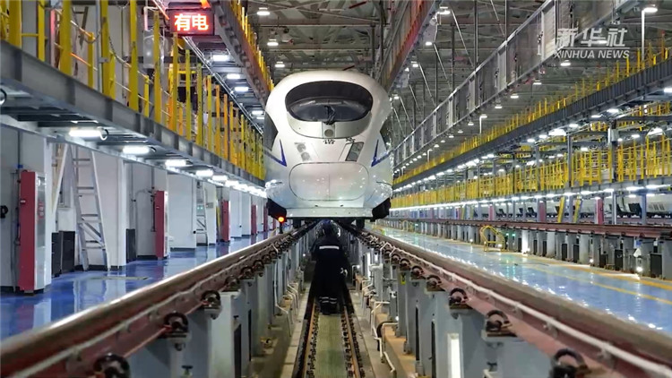 眼看、耳聽、手觸……他們將用4個小時檢查完一組動車8節(jié)車廂的近萬個零部件。