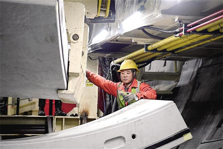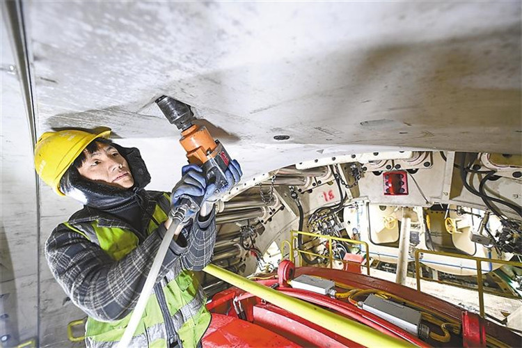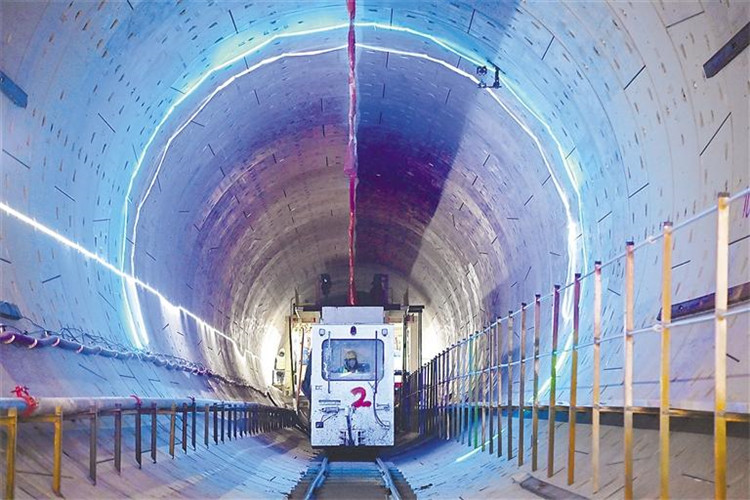 北京軌道交通22號線春節(jié)期間正常施工。隧道施工現(xiàn)場燈火通明,工人們干勁十足。