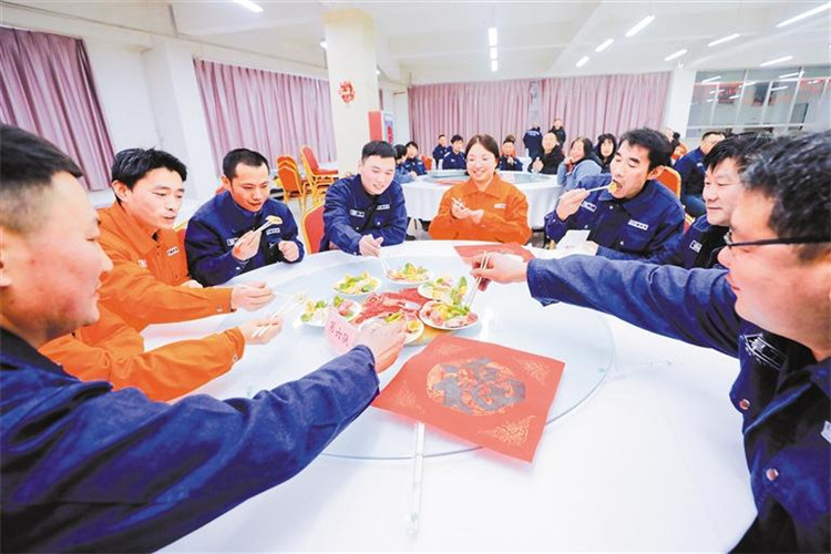 2月2日,中建二局安裝公司裝配式事業(yè)部組織堅守在崗的產(chǎn)業(yè)工人代表歡聚,包餃子,嘮家常。記者陳童攝