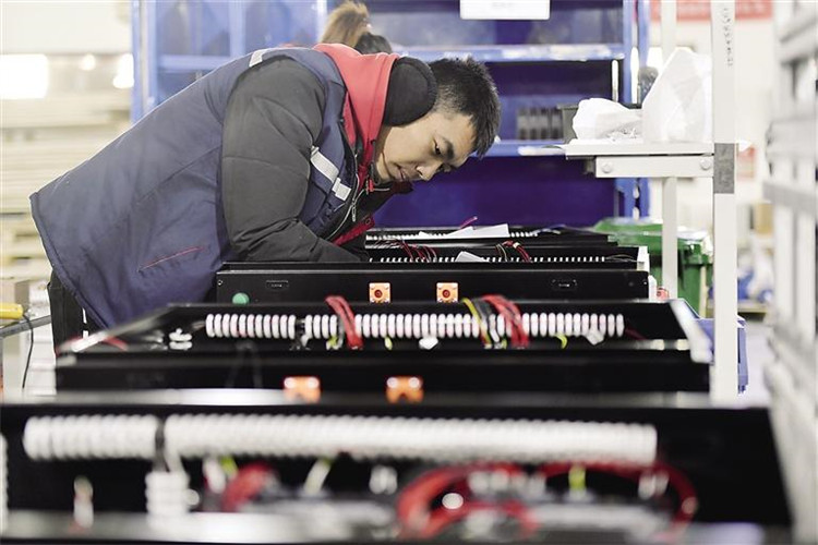在文安縣小務(wù)農(nóng)場(chǎng)北整電氣科技(廊坊)有限公司,工人正在組裝高壓變頻器。記者馬越通訊員王暉攝