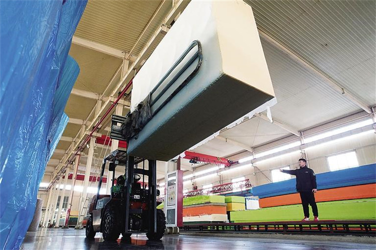 在文安縣小務(wù)農(nóng)場(chǎng)廊坊靜江科技有限公司,工人正在搬運(yùn)泡沫保溫材料。記者馬越通訊員鄭佳慶攝