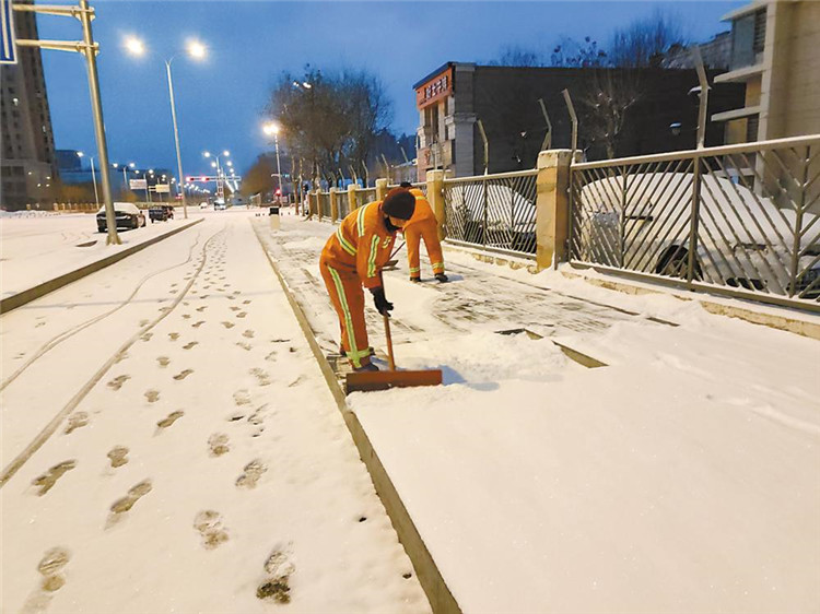 圖為安次環(huán)衛(wèi)職工清掃降雪。通訊員宋健供圖