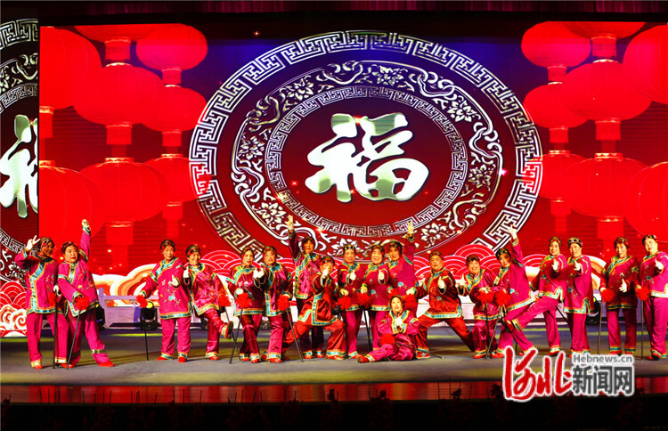1月30日,在永清縣2024年首屆“村晚”上,高鳳花等表演秧歌舞蹈。河北日?qǐng)?bào)記者劉杰攝
