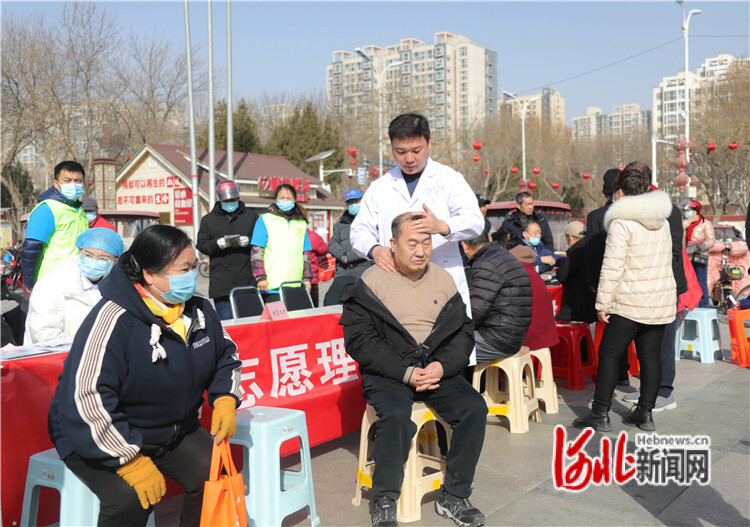 3月2日,在固安縣人民廣場,醫(yī)療志愿者為群眾義診。通訊員門叢碩攝