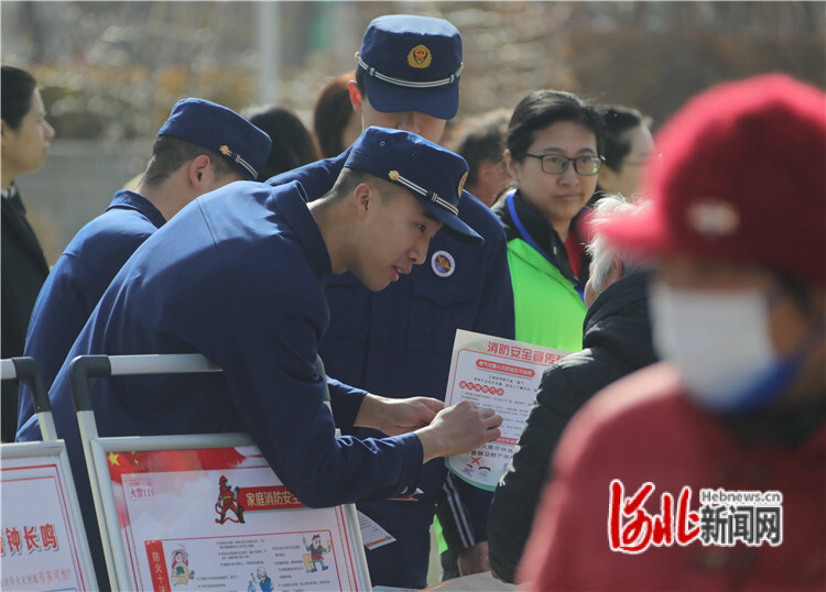 3月2日,在固安縣人民廣場,消防志愿者為群眾宣傳消防知識。通訊員門叢碩攝