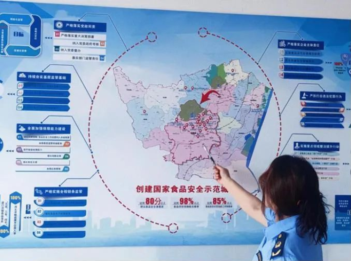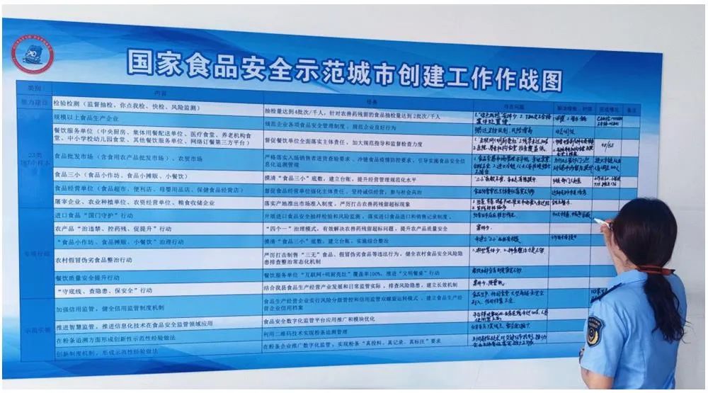 掛圖作戰(zhàn),細化舉措。搭建創(chuàng)建工作路線圖、時間表、作戰(zhàn)圖,細化創(chuàng)城工作的各項工作目標、重點環(huán)節(jié)、舉措等。全員加速,分“兵”部署,“掛圖作戰(zhàn)”,“火力”全開,攻重點、破難點、通堵點,確保創(chuàng)城目標任務全面達成。一張明晰的創(chuàng)城主要點位分布及任務目標分解圖,對全縣主要創(chuàng)城點位進行標注,用醒目紅字標注創(chuàng)城總目標,顯著標示創(chuàng)城工作的各項任務目標及工作要求,直觀清晰地將重要點位標示出來,對創(chuàng)城工作指導手冊進行全面梳理剖析,明確創(chuàng)城工作的總目標和具體標準,將工作任務分成嚴格落實黨政同責、持續(xù)夯實基層監(jiān)管基礎、全面加強保障能力建設、嚴格實施全程鏈條監(jiān)管、嚴格落實企業(yè)主體責任、嚴厲打擊違法犯罪行為、實施重點領域整治提升行動、示范引領8個方面,突出創(chuàng)城工作重點,推進重點問題逐項化解。
