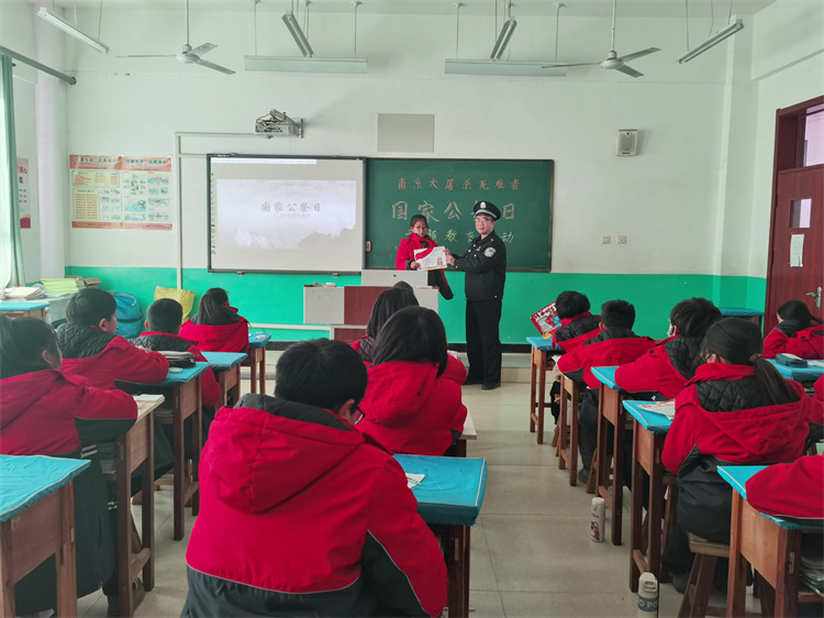 當(dāng)天是南京大屠殺死難者公祭日,教室里,民警向?qū)W生們介紹了國家公祭日的由來,播放了《南京大屠殺調(diào)查》紀錄片節(jié)選片段,使學(xué)生進一步了解到南京大屠殺的歷史背景、事件始末,教育引導(dǎo)廣大學(xué)生不忘民族苦難,牢記歷史悲劇,樹立正確理想信念,弘揚民族斗爭精神,勤奮學(xué)習(xí),刻苦鉆研,為祖國的繁榮富強而奮發(fā)進取。