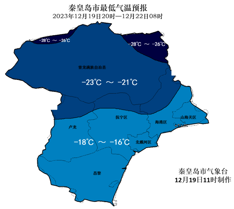 12月19日到21日秦皇島市最低氣溫普遍下降6℃至9℃