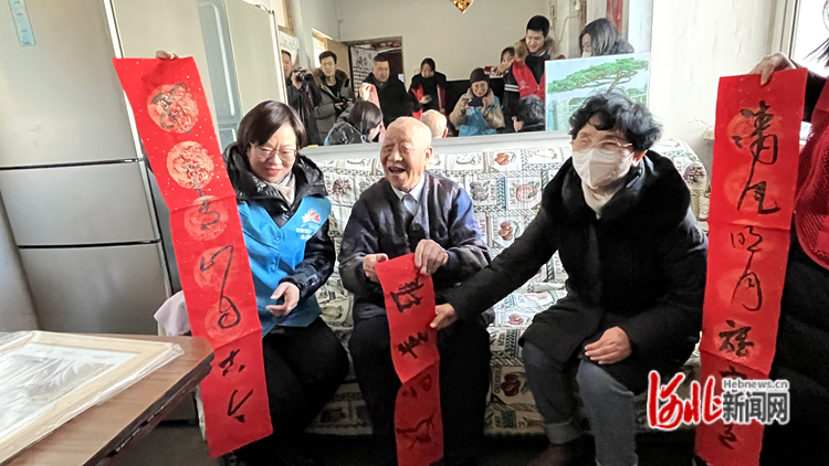 當(dāng)日上午,志愿者們看望了團(tuán)結(jié)路社區(qū)96歲高齡老兵白福山和石河鎮(zhèn)曉營(yíng)村殘疾人蘇麗瑩,為他們送去了米、面、油等慰問(wèn)品及春聯(lián)。