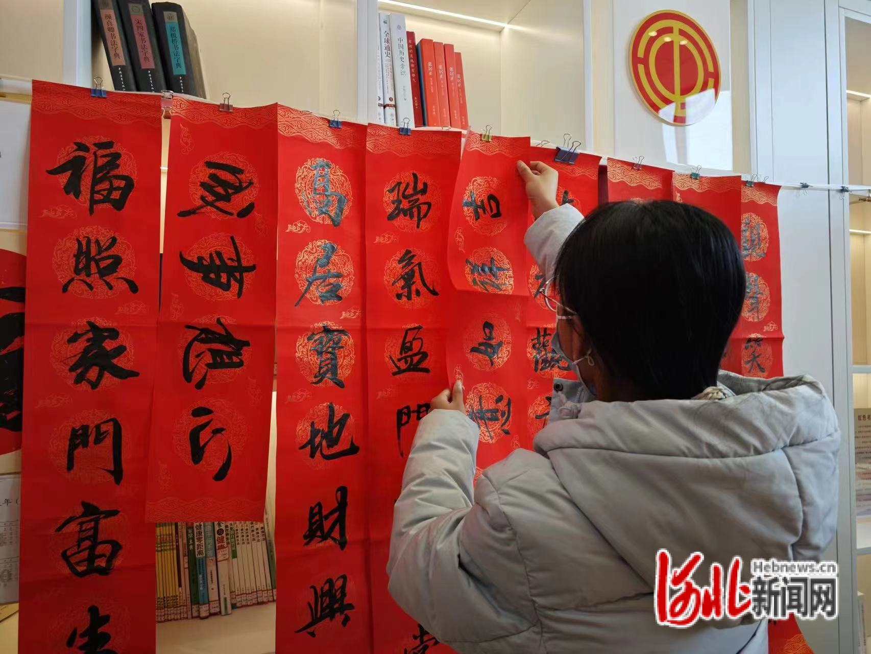 活動中,職工群眾選擇自己喜歡的楹聯(lián)佳句,由書法家現(xiàn)場書寫,“點單式”書春送福。書法家還現(xiàn)場講授書法知識。當(dāng)天,秦皇島市總工會向廣大職工群眾贈送春聯(lián)900余副,“!弊1200多張。