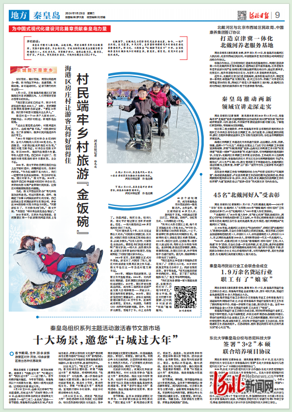 2015年,增加冰雪旅游項目,讓景區(qū)冬天也能營業(yè);2016年,村內開始發(fā)展民宿,老君頂景區(qū)獲批國家3A級旅游景區(qū);2017年,景區(qū)開始發(fā)展高山漂流,成為第二屆河北省旅游產業(yè)發(fā)展大會觀摩項目……開業(yè)以來,景區(qū)每年都有新變化。2023年,景區(qū)游覽范圍已覆蓋全村,游樂設施和配套建設面積達120萬平方米,逐漸形成春賞花、夏戲水、秋游園、冬滑雪(冰)的四季可游新局面。其中,冬季開設滑雪、雪地卡丁車、冰上龍舟等60余個游玩項目,成為秦皇島全市冰雪旅游的一張亮眼名片。去年全年,景區(qū)接待游客40多萬人次,盈利超千萬元。村民通過在景區(qū)打工、開民宿、賣特產、分紅等方式,人均增收近3萬元。