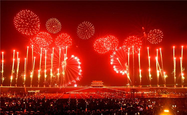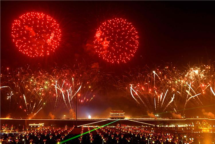 2月4日除夕夜,在河北省石家莊市正定縣古城南城門,繽紛綻放的電子煙花將古城夜空渲染成了一幅色彩斑斕的畫卷。新華社發(fā)(陳其保攝)