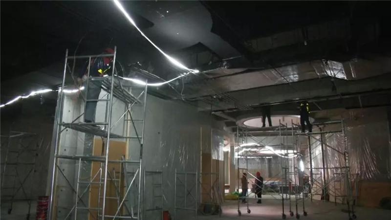 石家莊市城市館項目生產(chǎn)經(jīng)理 葉鵬:現(xiàn)在正在進行的是室內的機電和消防的管線安裝,還有精裝修的墻面鋁板、吊頂,以及A區(qū)的布展工作,室外正在進行面層鋪裝工作。預計A區(qū)在五一前能夠達到開館條件。