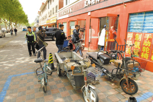 5月7日上午,民警再次來(lái)到西二環(huán)與建國(guó)路交叉口附近。這次,民警發(fā)現(xiàn)一個(gè)免費(fèi)停車位上被人為放置了反光錐用來(lái)占用車位。民警一番尋找后,一名商鋪的員工將反光錐拿開(kāi)。隨后,民警又發(fā)現(xiàn)一個(gè)免費(fèi)停車位被一輛電動(dòng)車占據(jù),在了解到電動(dòng)車的主人不在現(xiàn)場(chǎng)后,民警和一名員工將該電動(dòng)車搬離停車位。