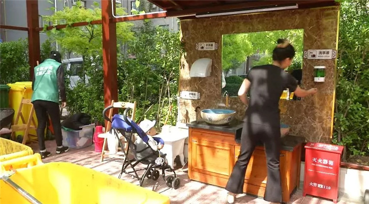 一個(gè)分揀箱,一副手套,一個(gè)夾子,對(duì)于垃圾沒(méi)有分類的居民,督導(dǎo)員現(xiàn)場(chǎng)幫助分揀分類。一排排紅、藍(lán)、黃、綠的分類垃圾桶,兩個(gè)干凈整潔的洗手池,旁邊還配備了干手器、洗手液等清洗用具,人們很難將這樣整潔干凈的環(huán)境與垃圾分類投放點(diǎn)結(jié)合在一起,但在現(xiàn)代城,垃圾分類已經(jīng)成為居民每天的必備工作。