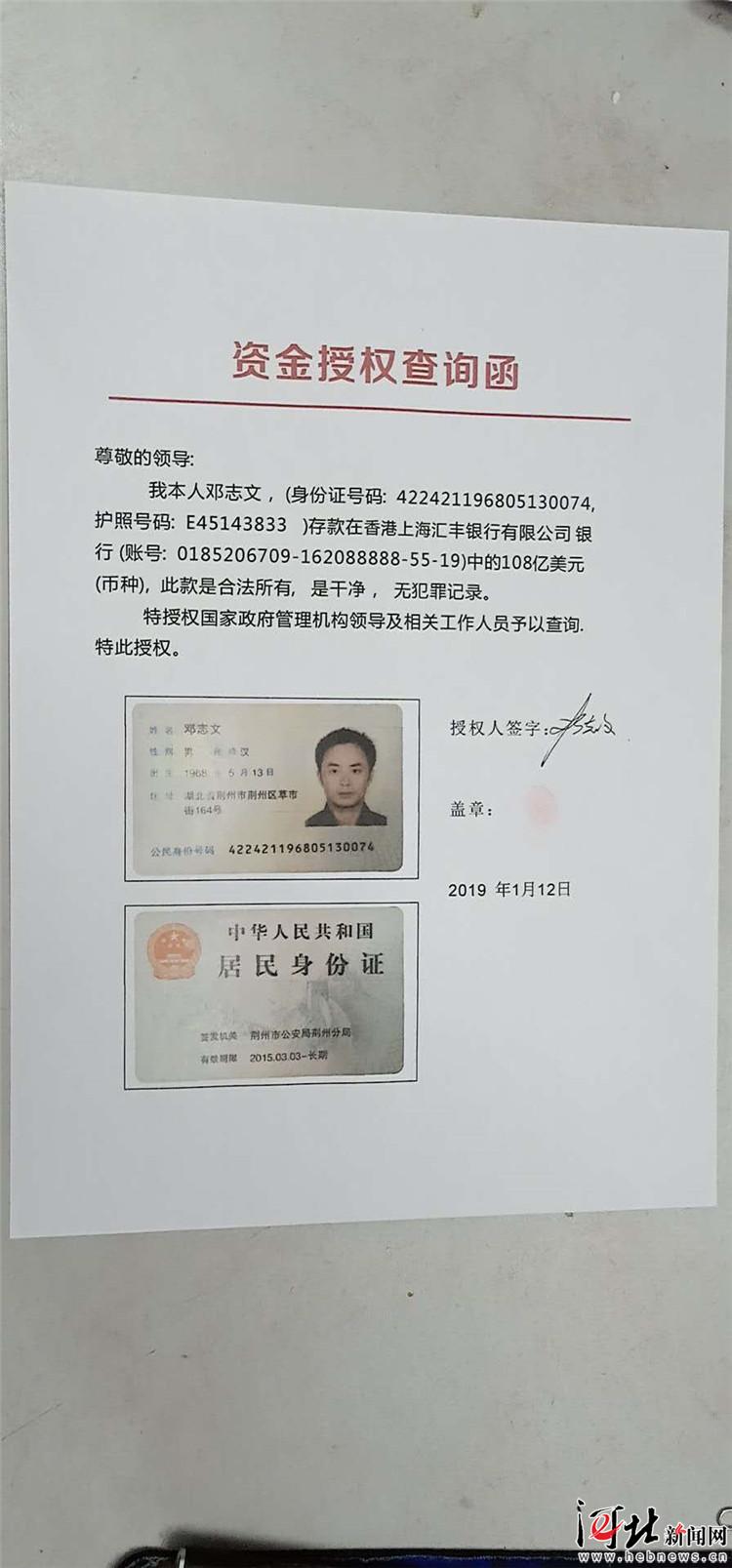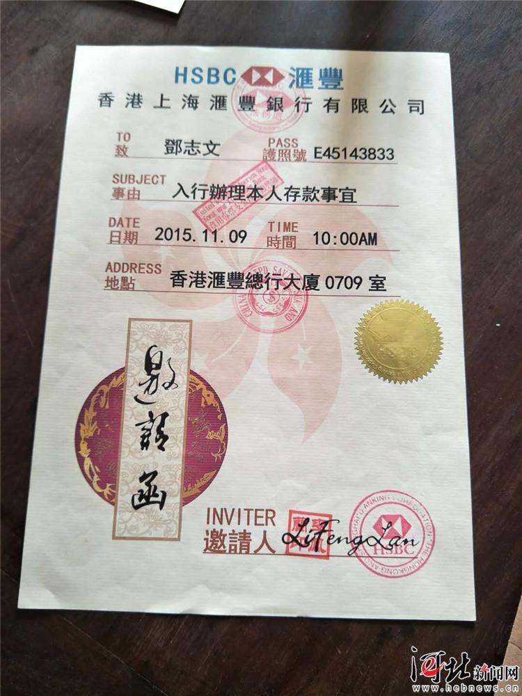 鄧某帶著他們來到香港匯豐銀行后,讓二人在外靜靜等候。待他出來后,手中便多了一張“香港匯豐銀行資產(chǎn)部出具的證明”,說鄧某在香港匯豐銀行有108億美元的流水單。