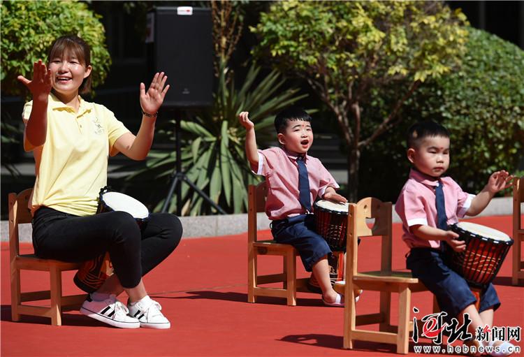 5月29日,福利院的孩子們?yōu)閻坌娜耸勘硌莨?jié)目——手鼓。