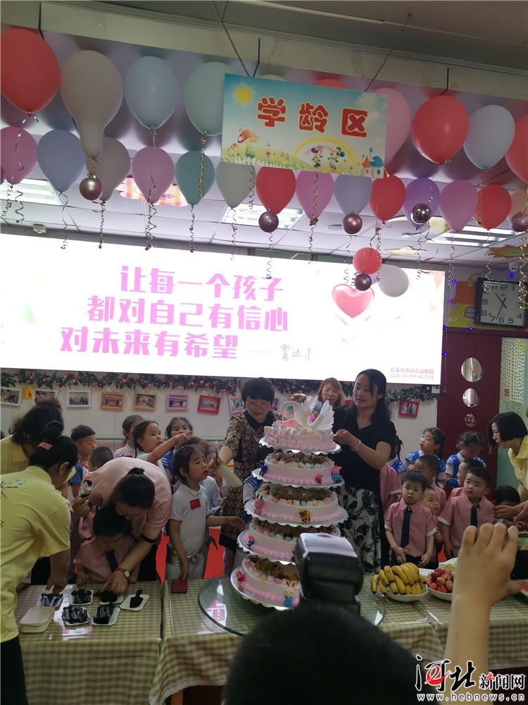 參觀結(jié)束后,一個多層大蛋糕擺在兒童生活區(qū)一樓大廳,福利院的寶寶們和參加開放日獻愛心的叔叔阿姨、小哥哥、小姐姐們一起品嘗蛋糕。在一片歡聲笑語中,大家共同分享著節(jié)日的喜悅。