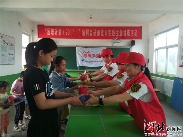 圖為河北省高速公路青銀管理處石家莊養(yǎng)護(hù)工區(qū)志愿者向?qū)W生們贈送文體用品。