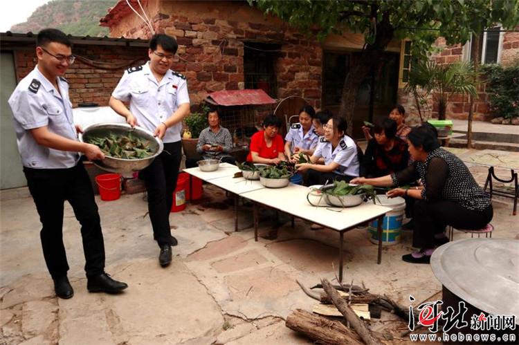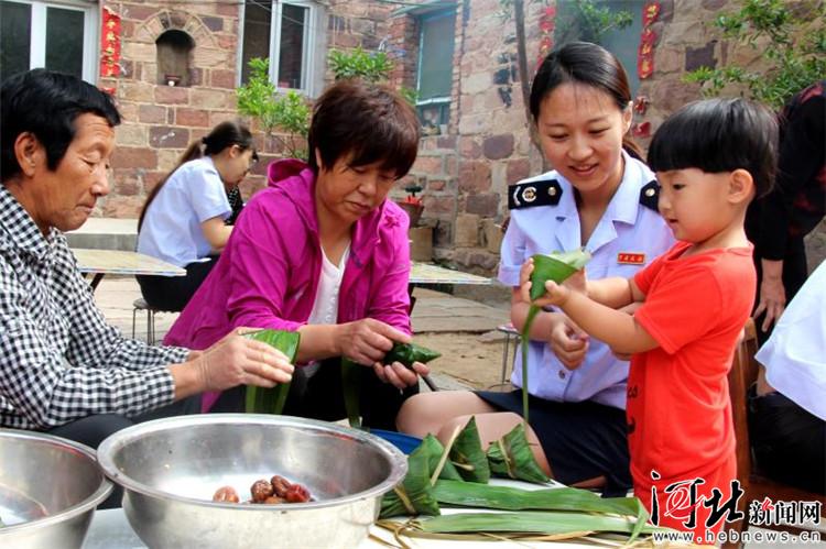 圖為國(guó)家稅務(wù)總局井陘縣稅務(wù)局志愿者與徐漢村村民一起包粽子、過(guò)佳節(jié)。