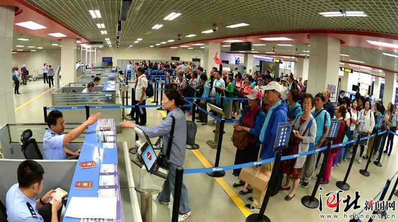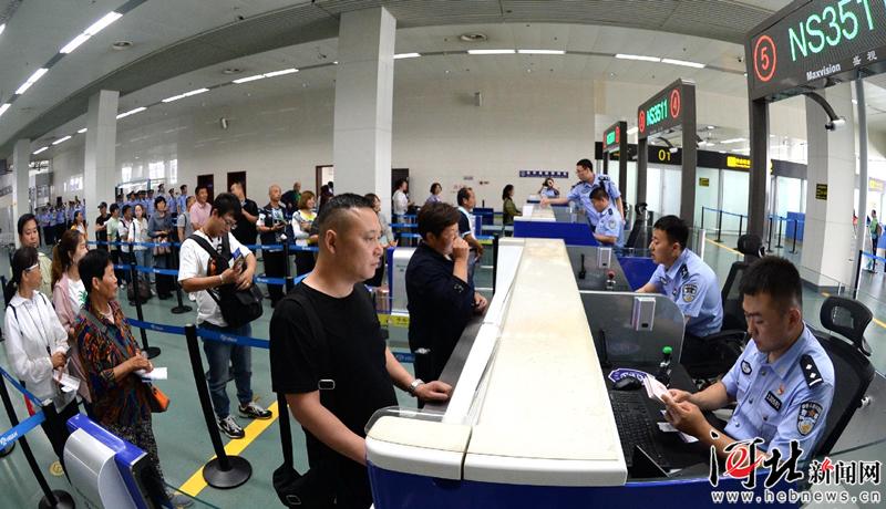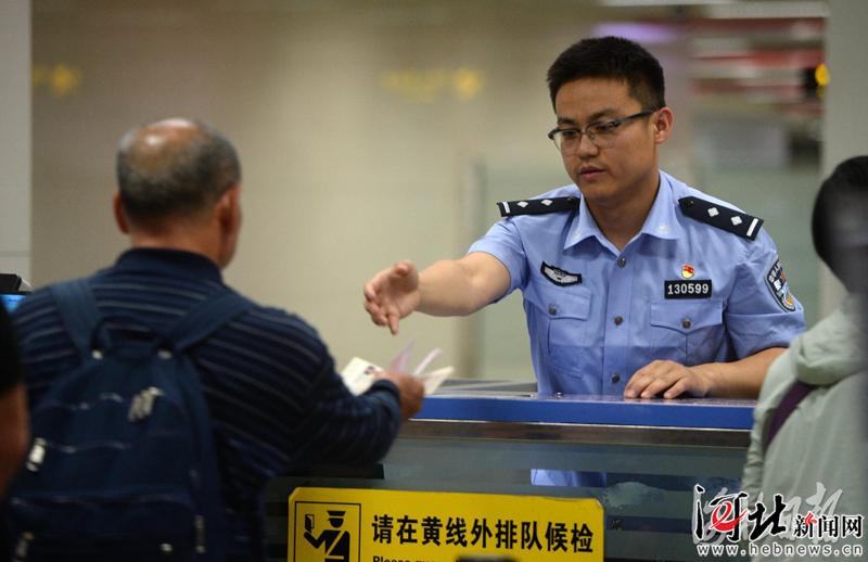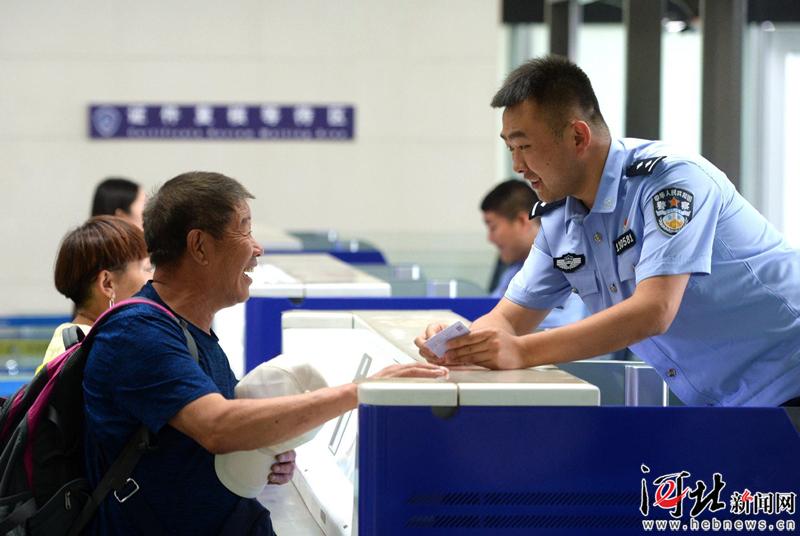 6月6日,石家莊出入境邊防檢查站民警為出境游客辦理相關手續(xù)。