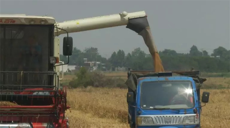現(xiàn)在農(nóng)忙季節(jié),基本早上八點上地,到晚上八九點。基本上一個小時能收割5、6畝地。