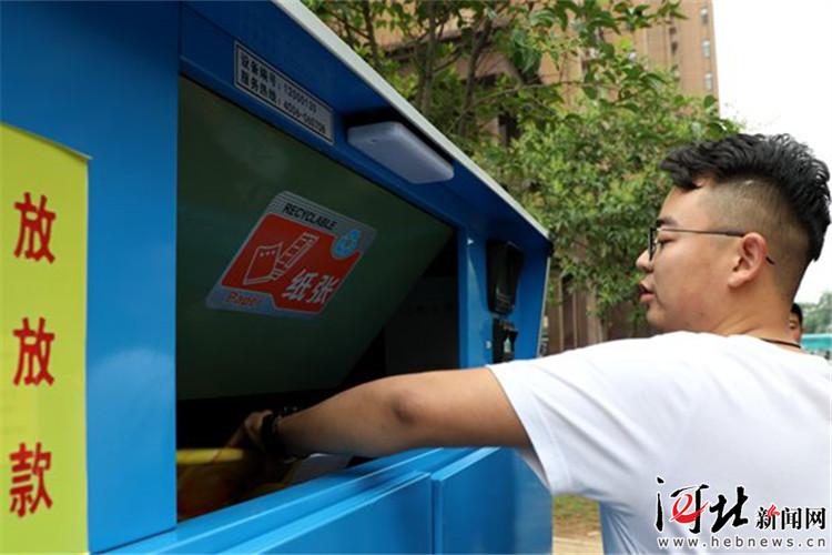 鹿泉區(qū)的水岸華苑小區(qū)業(yè)主正在投遞廢紙箱