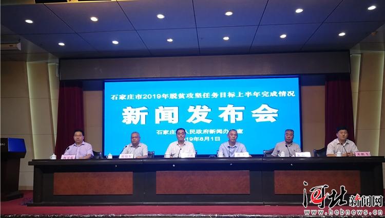 8月1日,石家莊市召開2019年脫貧攻堅任務(wù)目標上半年完成情況新聞發(fā)布會。圖為發(fā)布會現(xiàn)場。 記者董昌攝