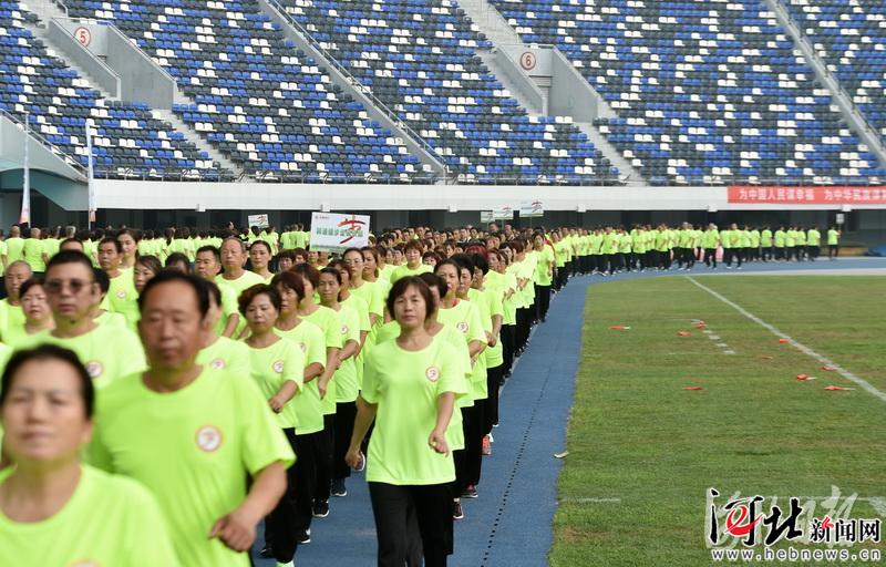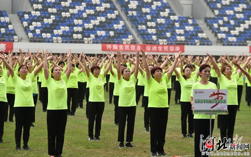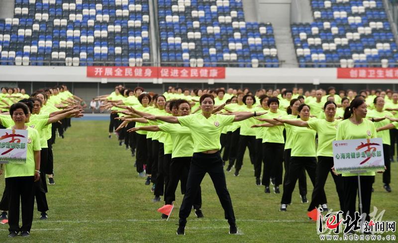 8月3日,河北省健步走協會的成員在裕彤國際體育中心內進行第九套廣播體操集體表演展示。