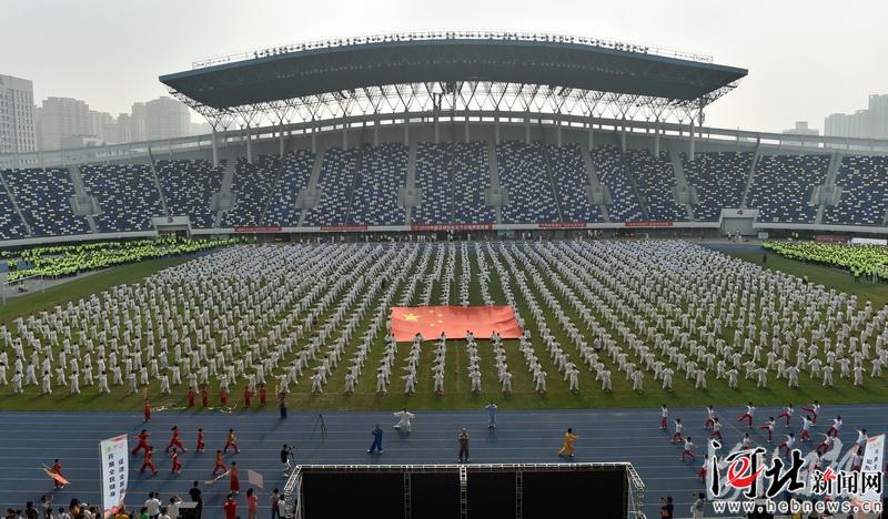 8月3日,石家莊市武術協會成員在進行太極拳展演。