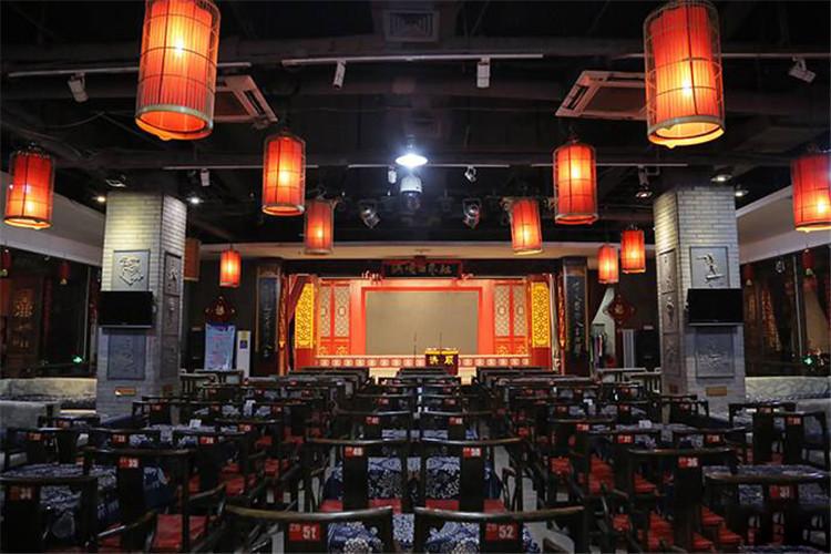 在璀璨的夜色里,朱紅色的大門耀眼奪目;天橋藝人、曲藝名家的雕像栩栩如生;聲、光、電、顯示屏盡顯高雅品質(zhì);身穿大褂的藝人;傳統(tǒng)的曲藝表演。這一切都讓洪順曲藝社散發(fā)著迷人的藝術(shù)魅力。