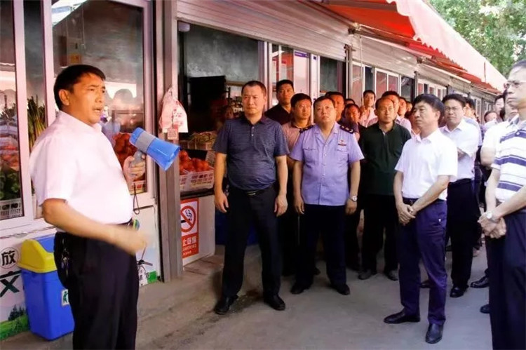 劉軍志一行選取了橋西區(qū)老舊市場、新建市場和占道市場中具有代表性的悅家鄰里菜市場、東里綜合便民市場和西里南街菜市場等三個示范點,進行現(xiàn)場觀摩。會上,工作人員就各市場的基本信息公示、環(huán)境衛(wèi)生、商品擺放,從秩序管理及食品三防等標準規(guī)范方面進行了詳細解說。
