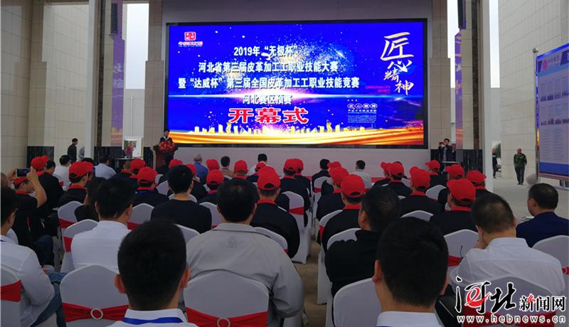 9月19日,2019“無極杯”河北省第三屆皮革加工工職業(yè)技能大賽暨“達(dá)威杯”全國皮革加工工職業(yè)技能競賽河北賽區(qū)預(yù)賽在無極縣舉行。圖為比賽開幕式現(xiàn)場。 通訊員甄建坡攝