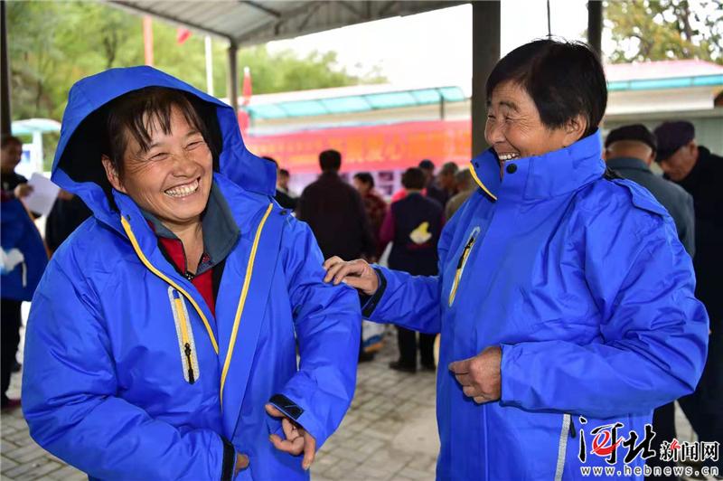 10月24日,平山縣灣子村村民穿上嶄新的防寒服,露出了發(fā)自內(nèi)心的笑容。