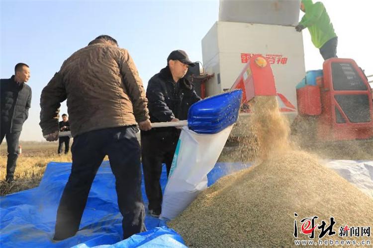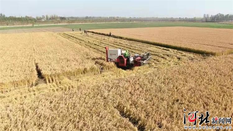 11月14日,正定周家莊村鋪展開一幅豐收圖,該村今年嘗試恢復種植的生態(tài)水稻喜獲豐收。  張邵鯤攝