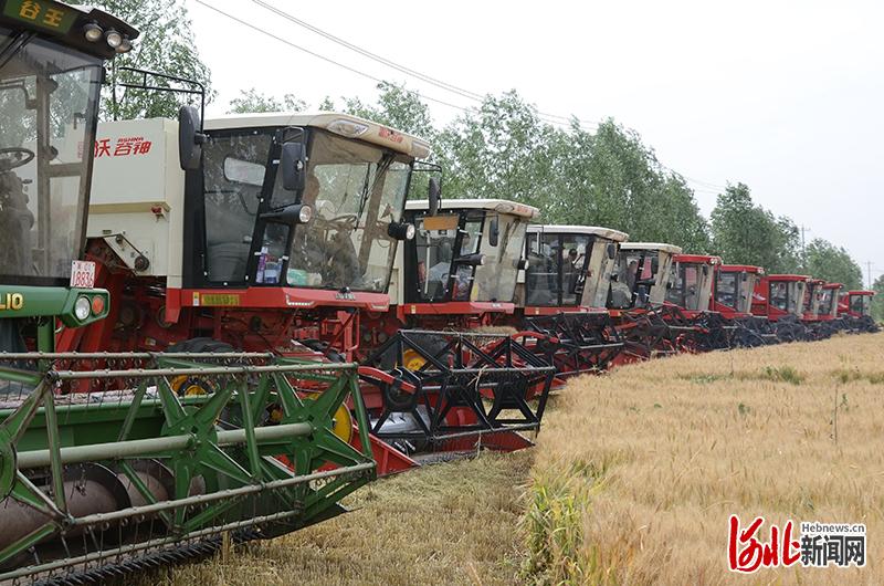在河北省石家莊市藁城區(qū)北營村,小麥聯(lián)合收割機(jī)整裝待發(fā)。 通訊員王凱凱攝