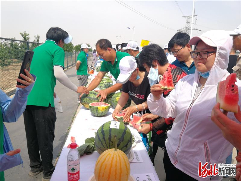 河北新聞網(wǎng)6月7日訊(河北日報記者董昌)“北京市農(nóng)林科學(xué)院蔬菜研究中心展示的京欣系列西瓜品種,又脆又甜,口感不錯,咱們今年引回去試種怎么樣?”今天,在第一屆中國·北方農(nóng)業(yè)(蔬菜)科技創(chuàng)新發(fā)展大會上,新樂市國鋒西瓜專業(yè)合作社理事長韓國鋒帶著10余名瓜農(nóng)穿梭在西甜瓜展示區(qū)為來年的西瓜種植挑選著新品種。