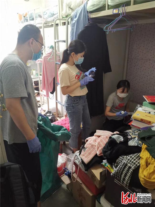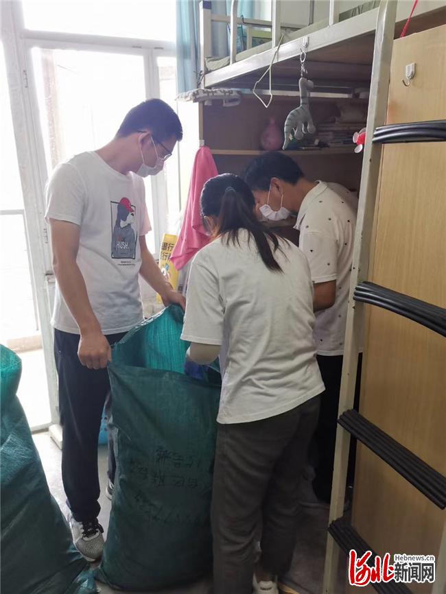 圖為河北師大商學(xué)院老師們正在為畢業(yè)生們打包行李。