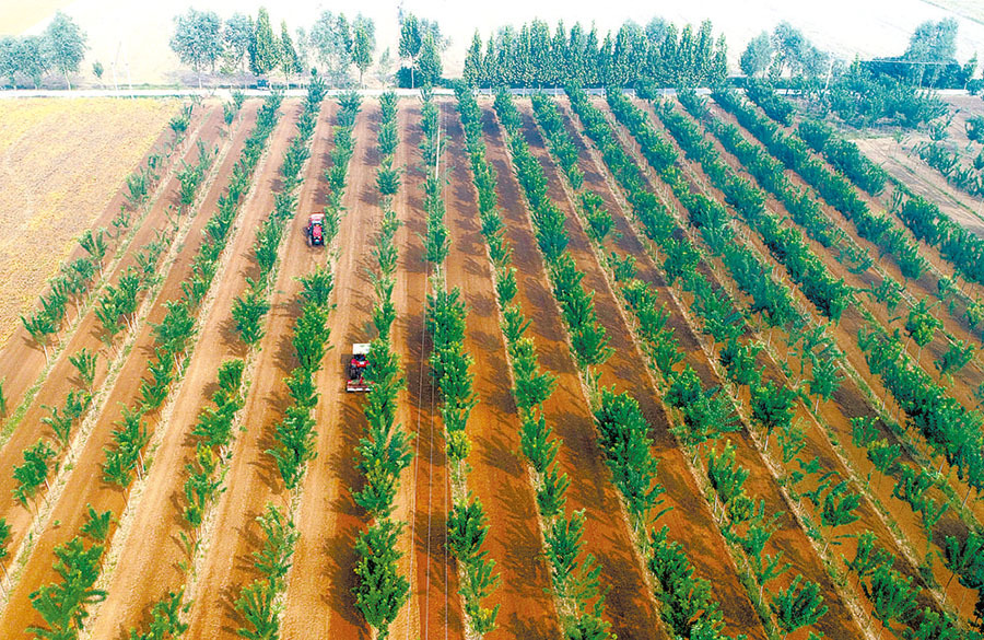 農(nóng)用機(jī)械在田間忙碌。記者郄磊攝