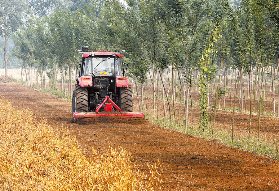 農(nóng)用機(jī)械在田間平整土地。記者郄磊攝