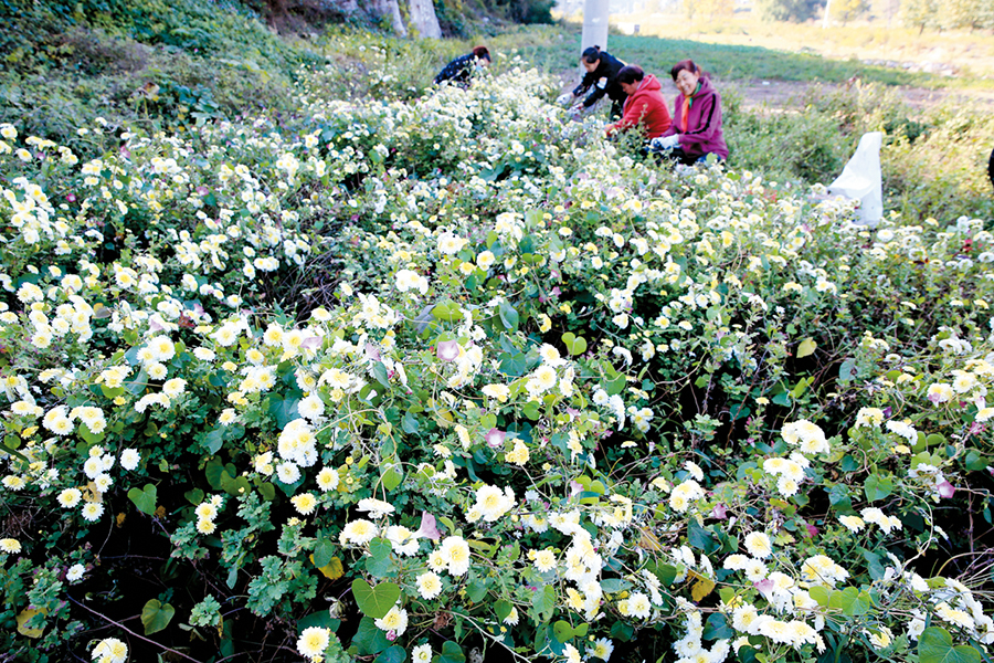 村民們正在收獲菊花。記者張海強(qiáng)攝