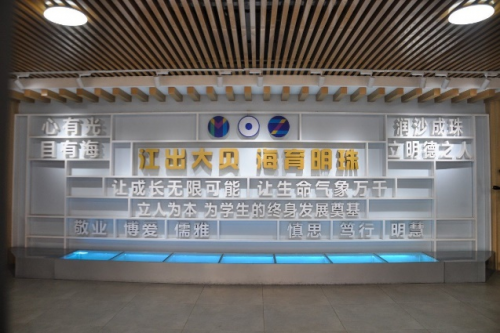 走進教學樓五樓,體感七彩頂燈、投影射燈跟隨學生的身影打開關閉。炫彩奇幻的體感長廊把學生帶入現代科技的殿堂。這里有聲韻靈動的音樂教室、秀麗雅致的書法教室、鏈接世界的信息教室、藝術空間美術教室,為學;顫娍蓯鄣暮⒆雍投嗖哦嗨嚨睦蠋煚I造了一個快樂學習的大舞臺。