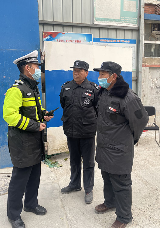 執(zhí)勤交警在現(xiàn)場(chǎng)整治違停,保障道路暢通。