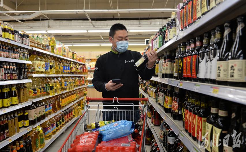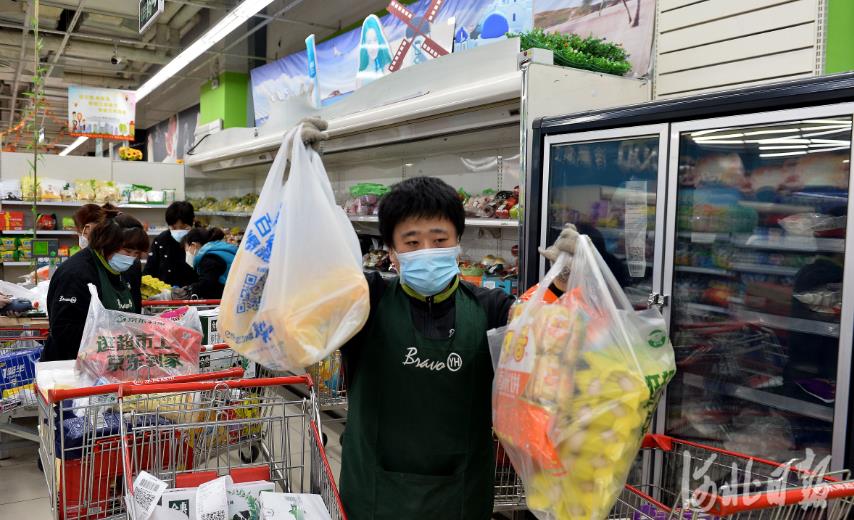 1月10日,河北省石家莊市一家超市工作人員在為線上訂單配貨。當日,石家莊市商超全部暫停線下營業(yè),轉(zhuǎn)入線上銷售,實行網(wǎng)上下單,無接觸配送,確保居家期間群眾生活物資不斷檔。 河北日報記者張昊攝